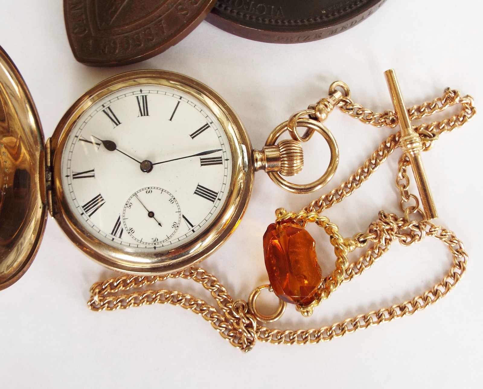 An Antique Omega Full Hunter Pocket Watch with Double Albert