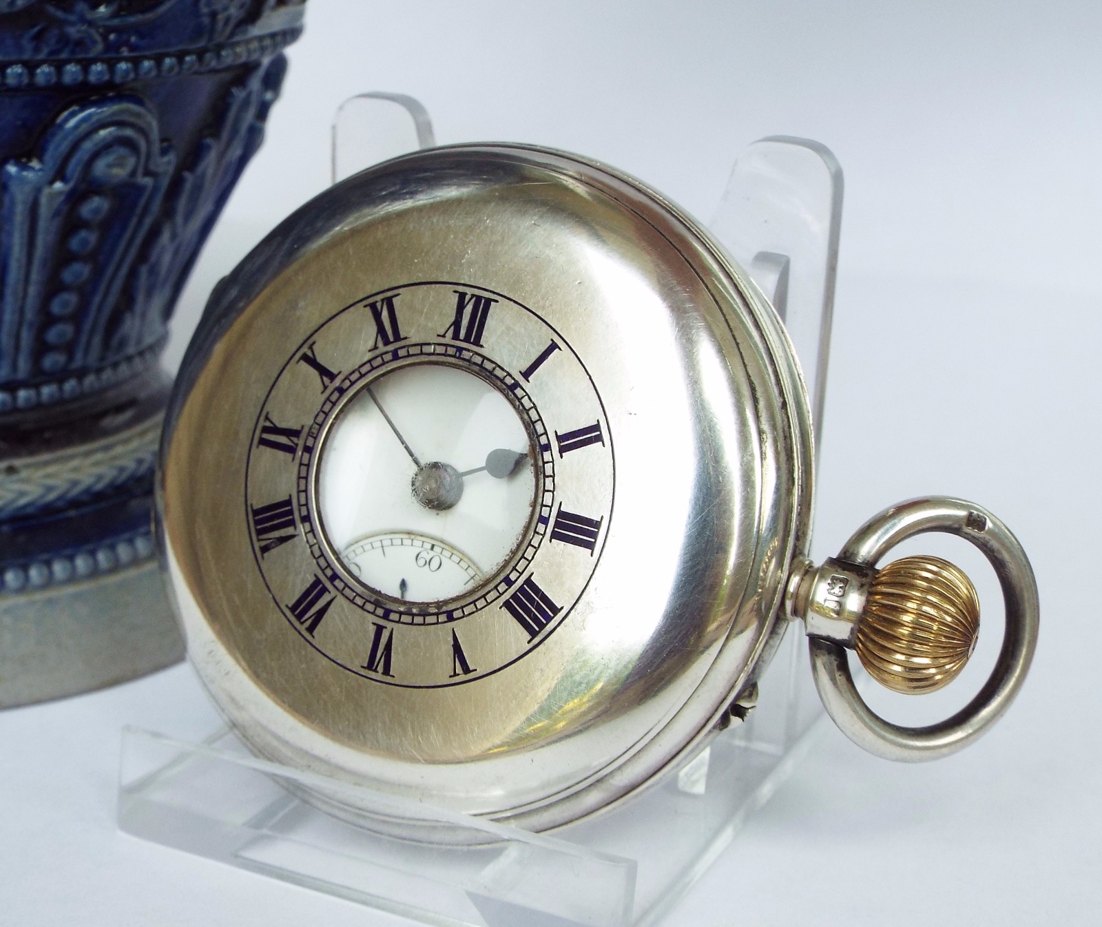An Antique Silver Half Hunter Pocket Watch by Rotherham & Son