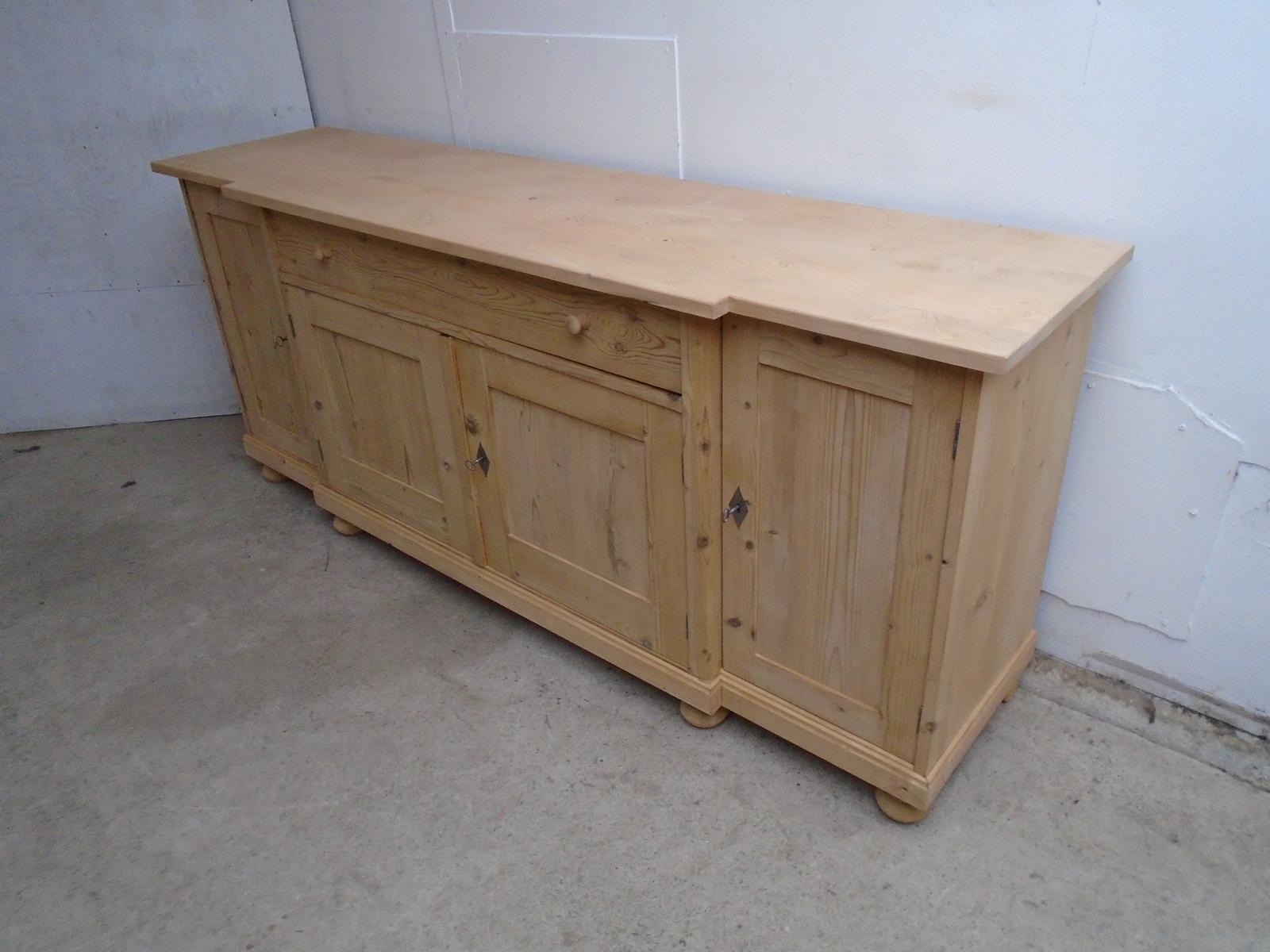 An Antique/Old Pine Breakfront 4 Door Dresser Base / TV Stand to Wax /Paint