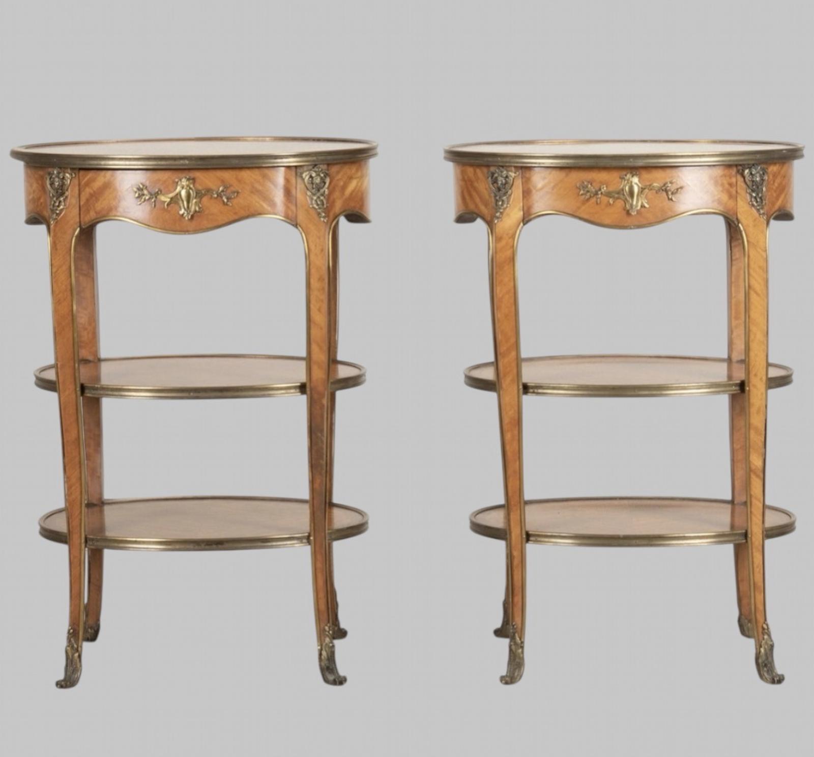 An Attractive Pair Of Satinwood Bedside or Side Tables both with drawers and original brass mounts and decoration on cabriole legs