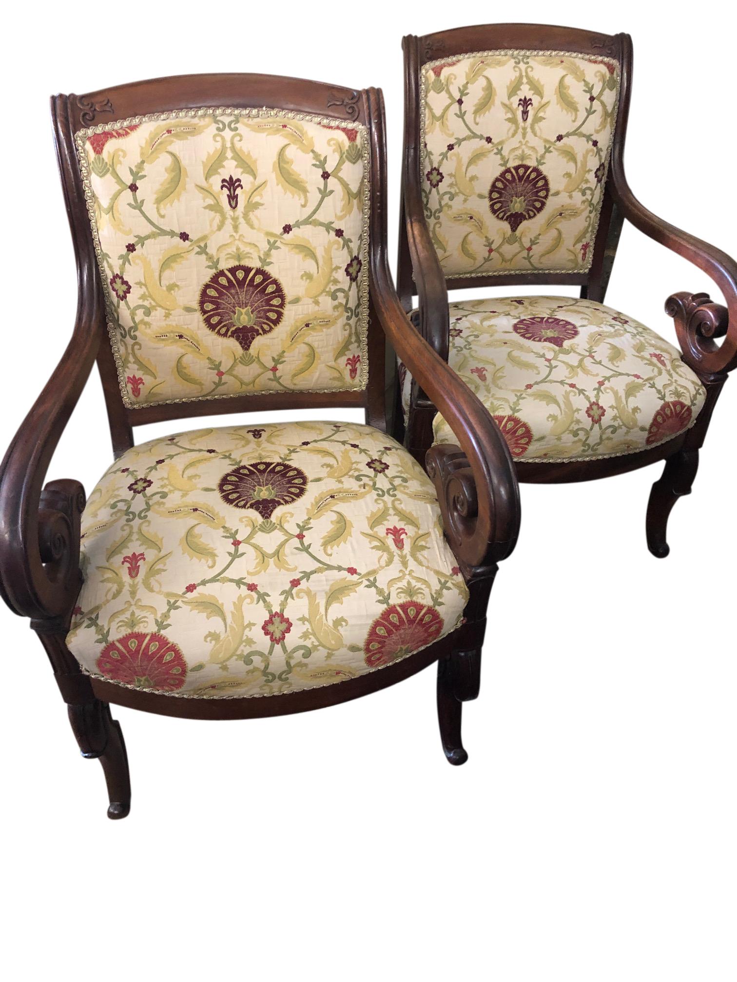 An Attractive Pair of French Antique Mahogany Arm Chairs Circa 1875