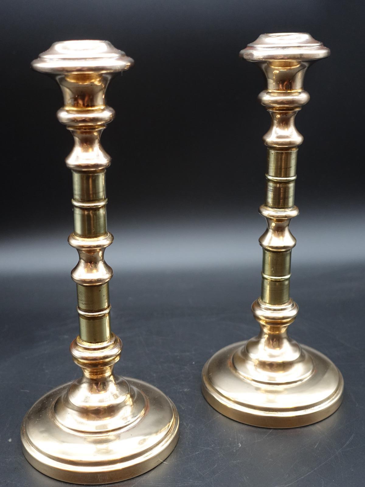 An Attractive Pair of Late 19th Century Ring Turned Brass Candlesticks