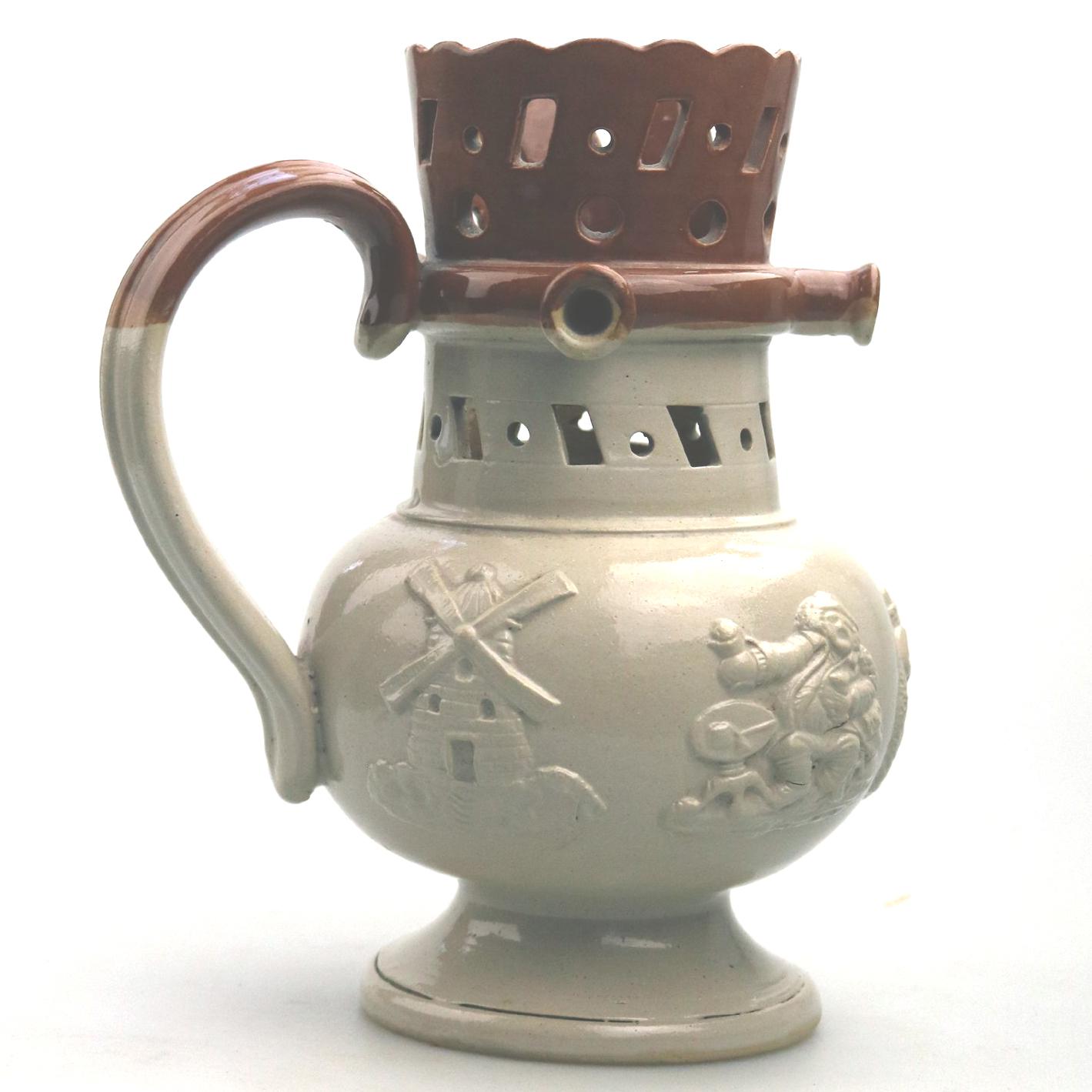 An Attractive Stoneware Pottery Staffordshire / Denby Puzzle Jug C.19thc
