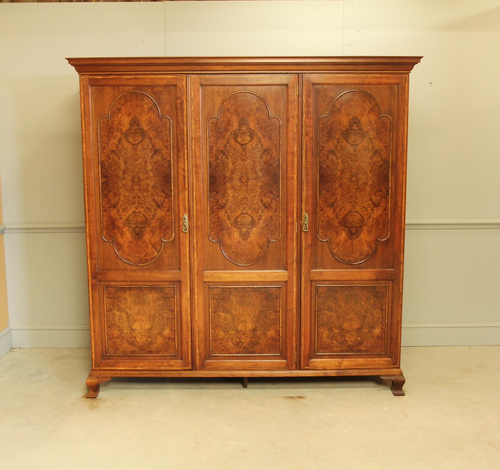 An Early 20th Century Burr Walnut Triple Wardrobe