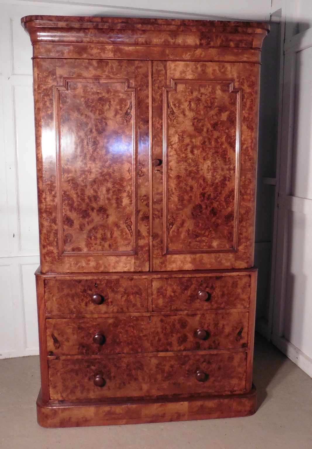 An Outstanding Victorian Burr Walnut Linen Press c.1880