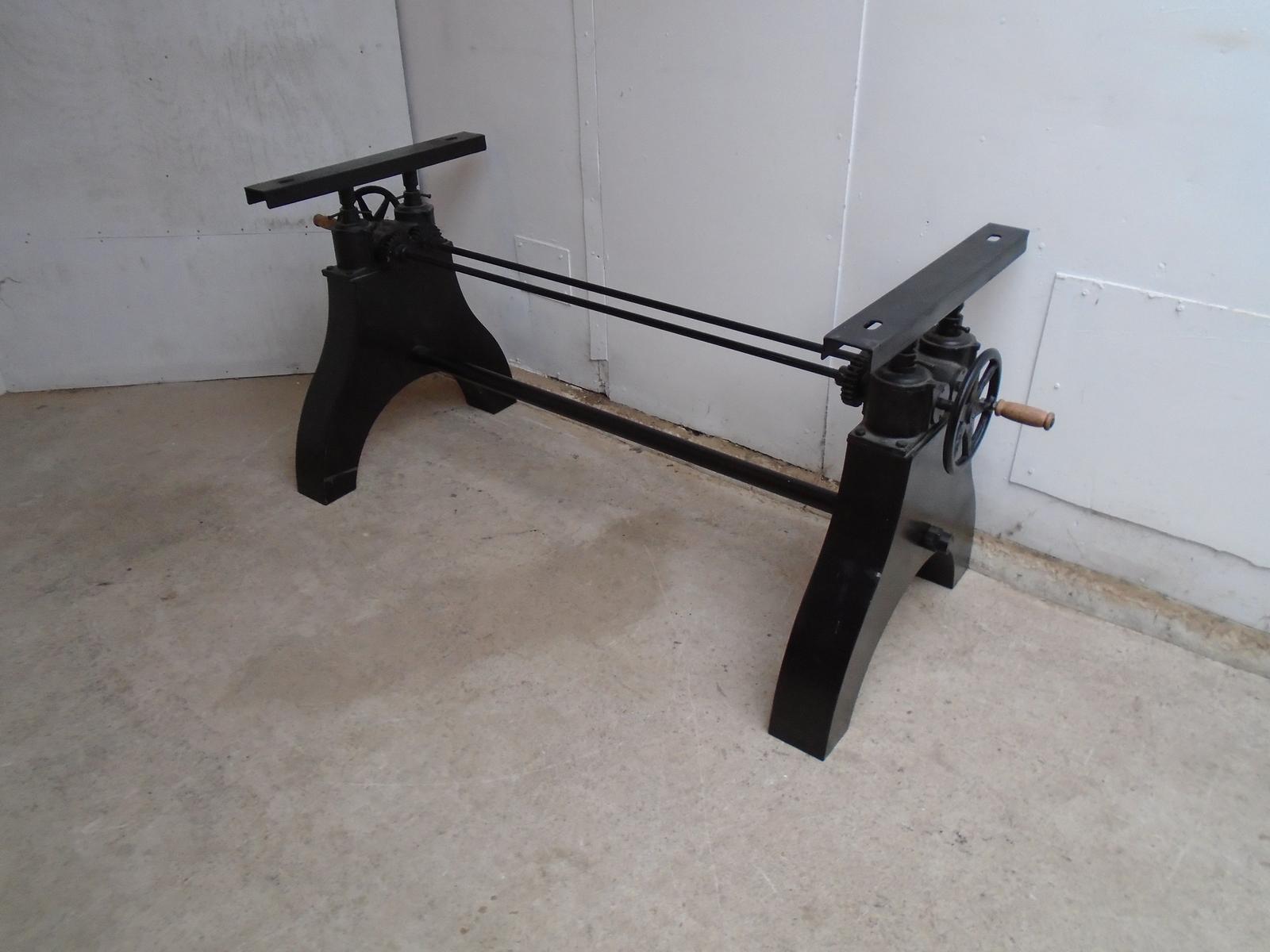An Ultra Trendy Industrial Vintage Black Metal Crank Table Base