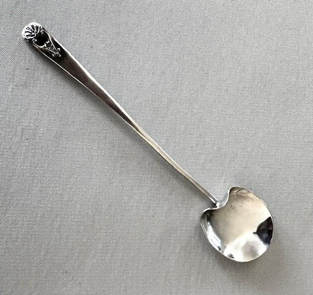 An Unusual Edwardian Silver Long Handled Olive Spoon