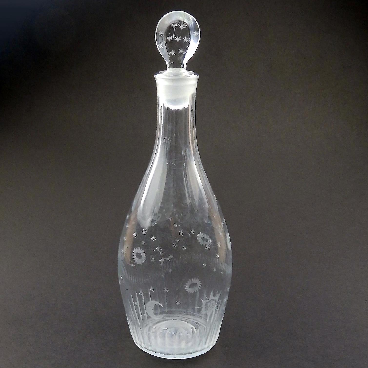 An Unusual Sun, Moon & Stars Engraved Georgian Decanter Late 18th/early 19thc