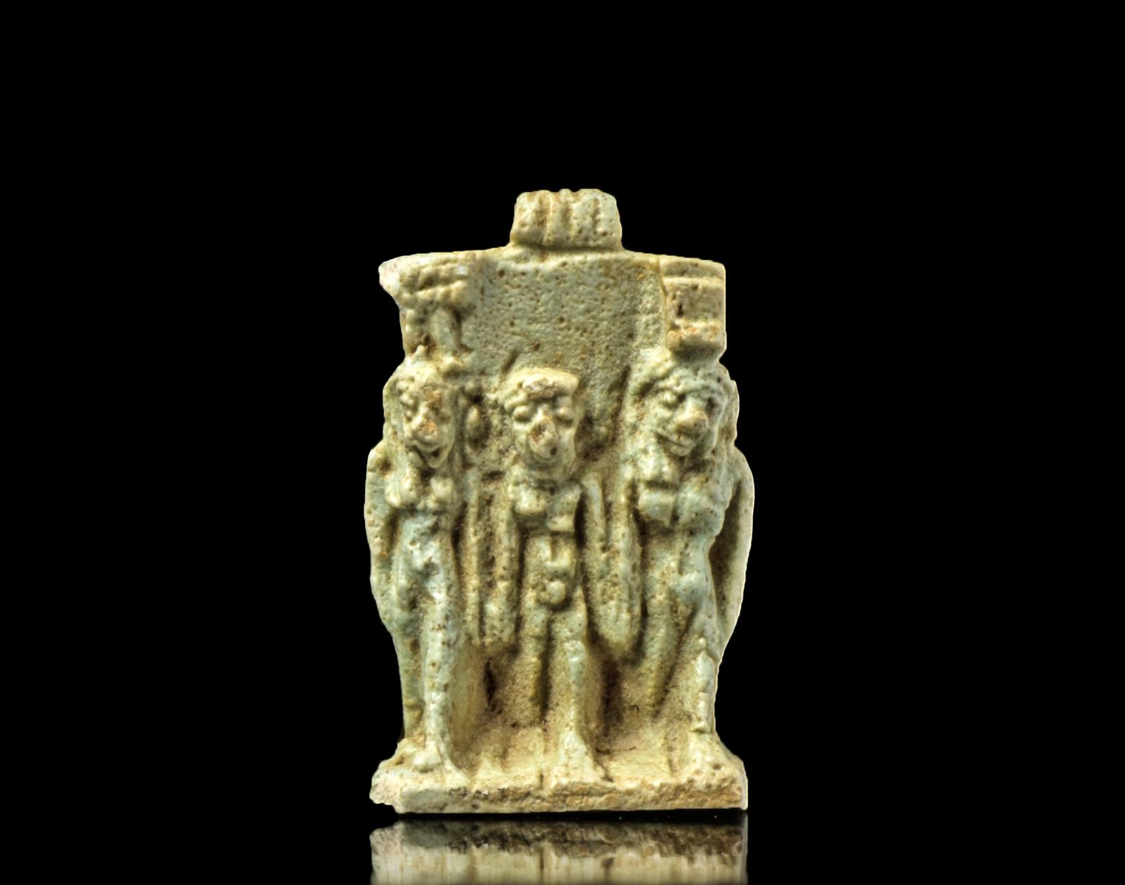 Ancient Egyptian Faience Amulet of the Osirian Triad