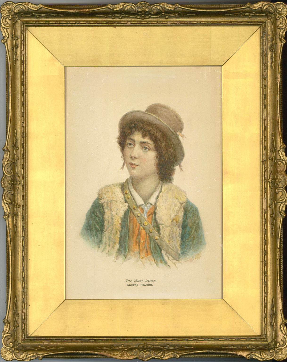 Andrea Finardi - Gilt Framed 19th Century Watercolour, The Young Italian