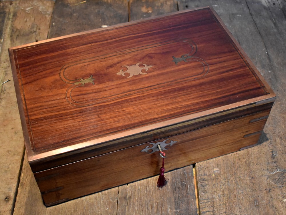 Anglo Indian Brass Inlaid Teak Writing Slope (1 of 7)