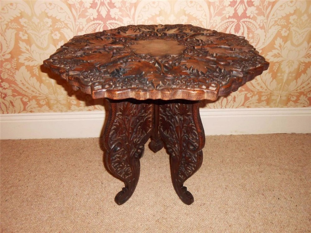 Anglo Indian Carved Hardwood Leaf & Snake Design Table (1 of 1)