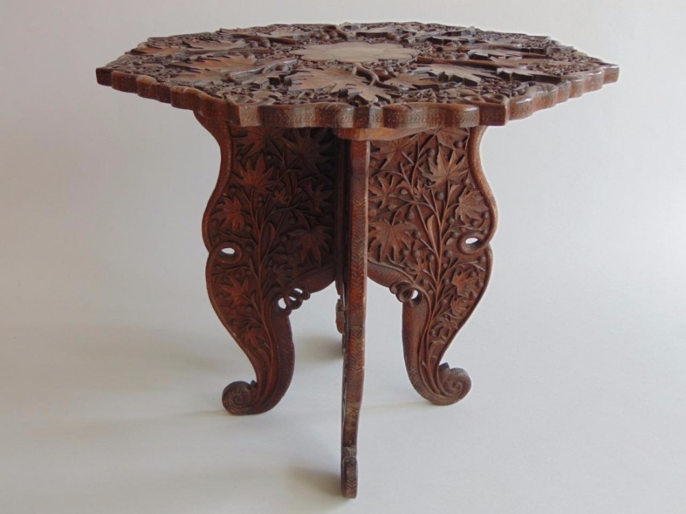 Anglo Indian Carved Hardwood Leaf & Snake Design Table (1 of 1)