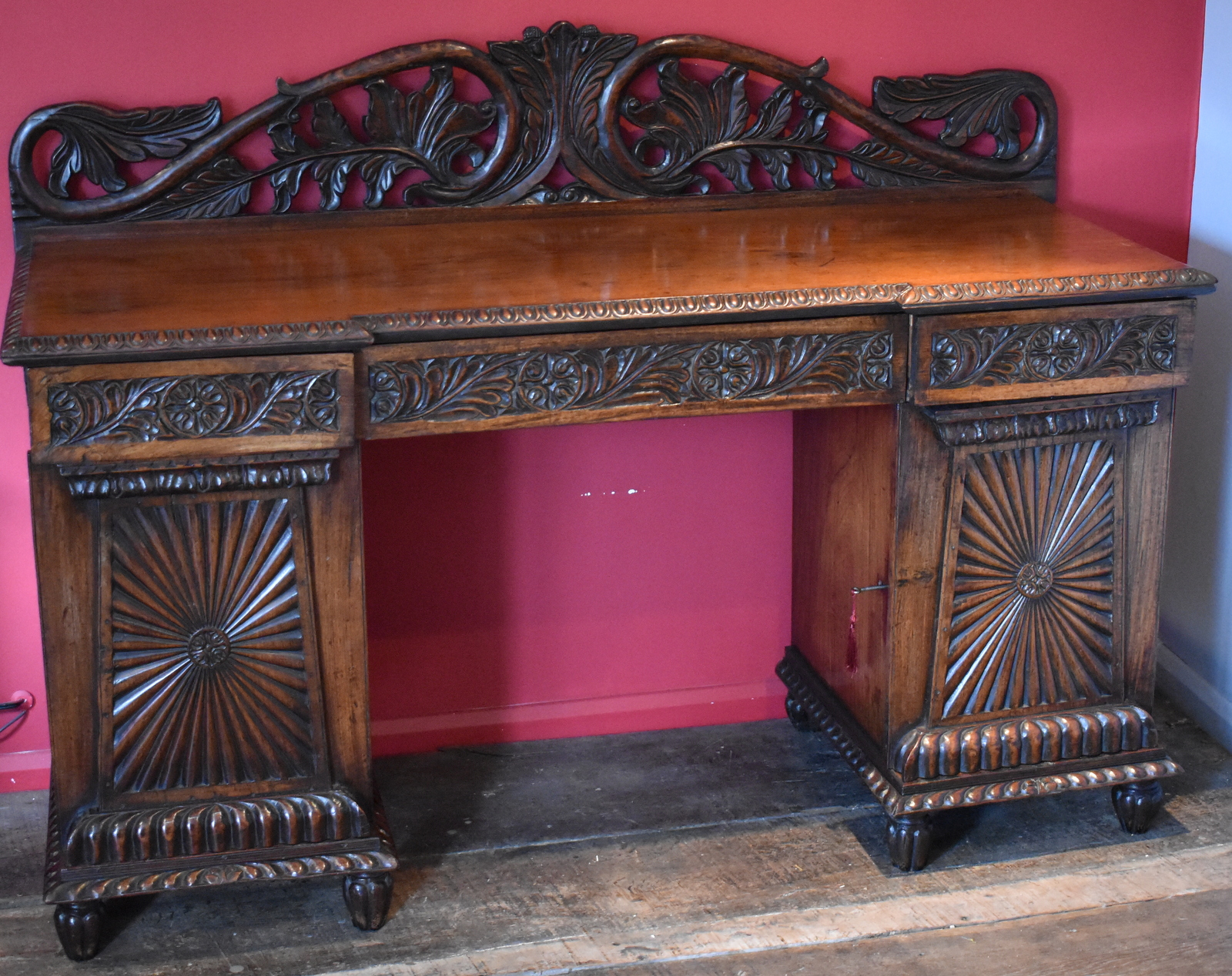 Anglo Indian Carved Padouk Wood Sideboard c.1850