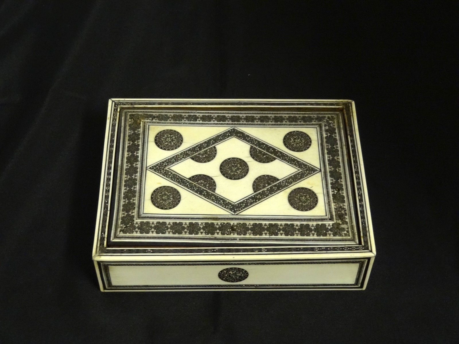 Anglo-Indian Ivory And Silver Or Pewter Inlaid Box, Anglo-Indian Made, Circa 2nd Half 19th Century