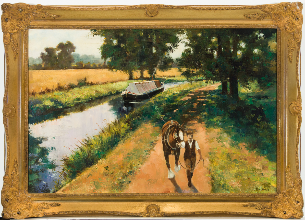 Anthony Avery - Signed Contemporary Oil, Rural Canal Scene with Cart Horse