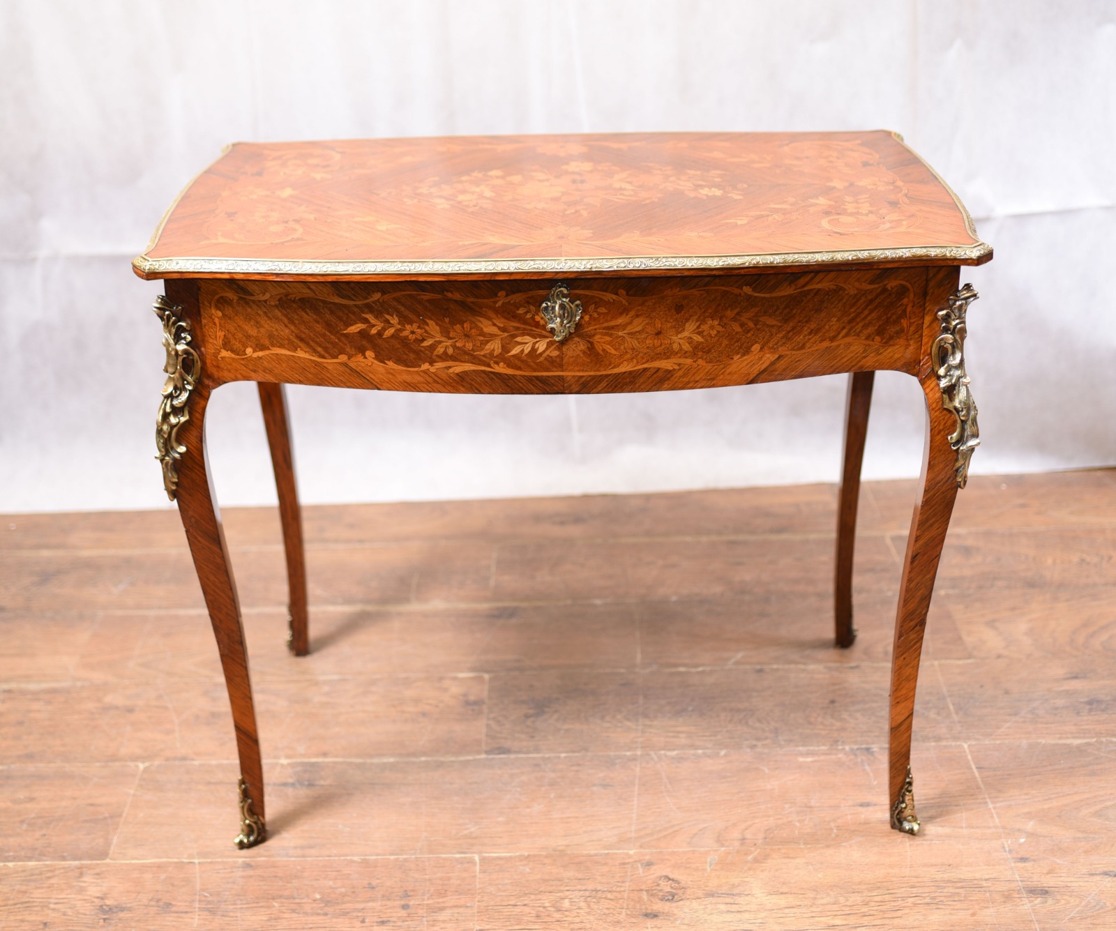 Antiqe French Writing Table with Marquetry Inlay 1880