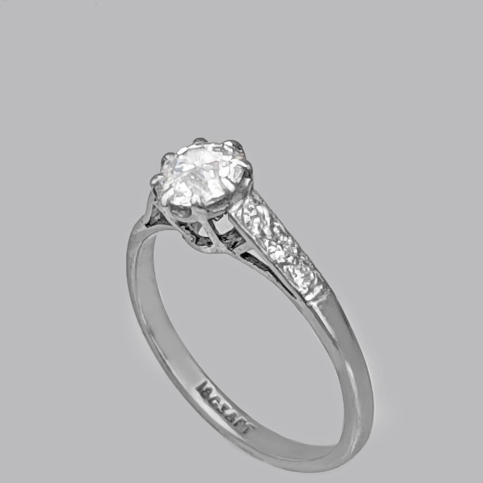 Antique 0.80ct Diamond Solitaire 18ct White Gold Plat Edwardian Engagement Ring