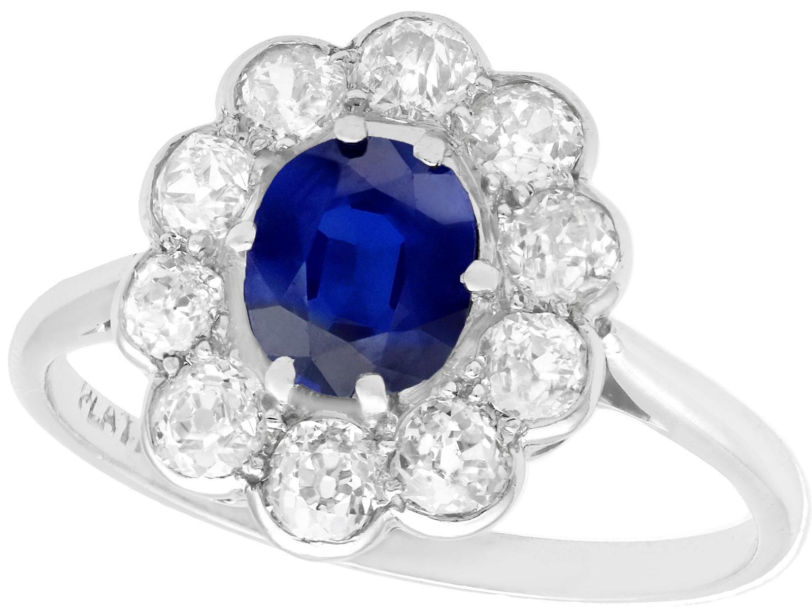 Antique 0.95ct Sapphire & 1.15ct Diamond, Platinum Cluster Ring (1 of 12)