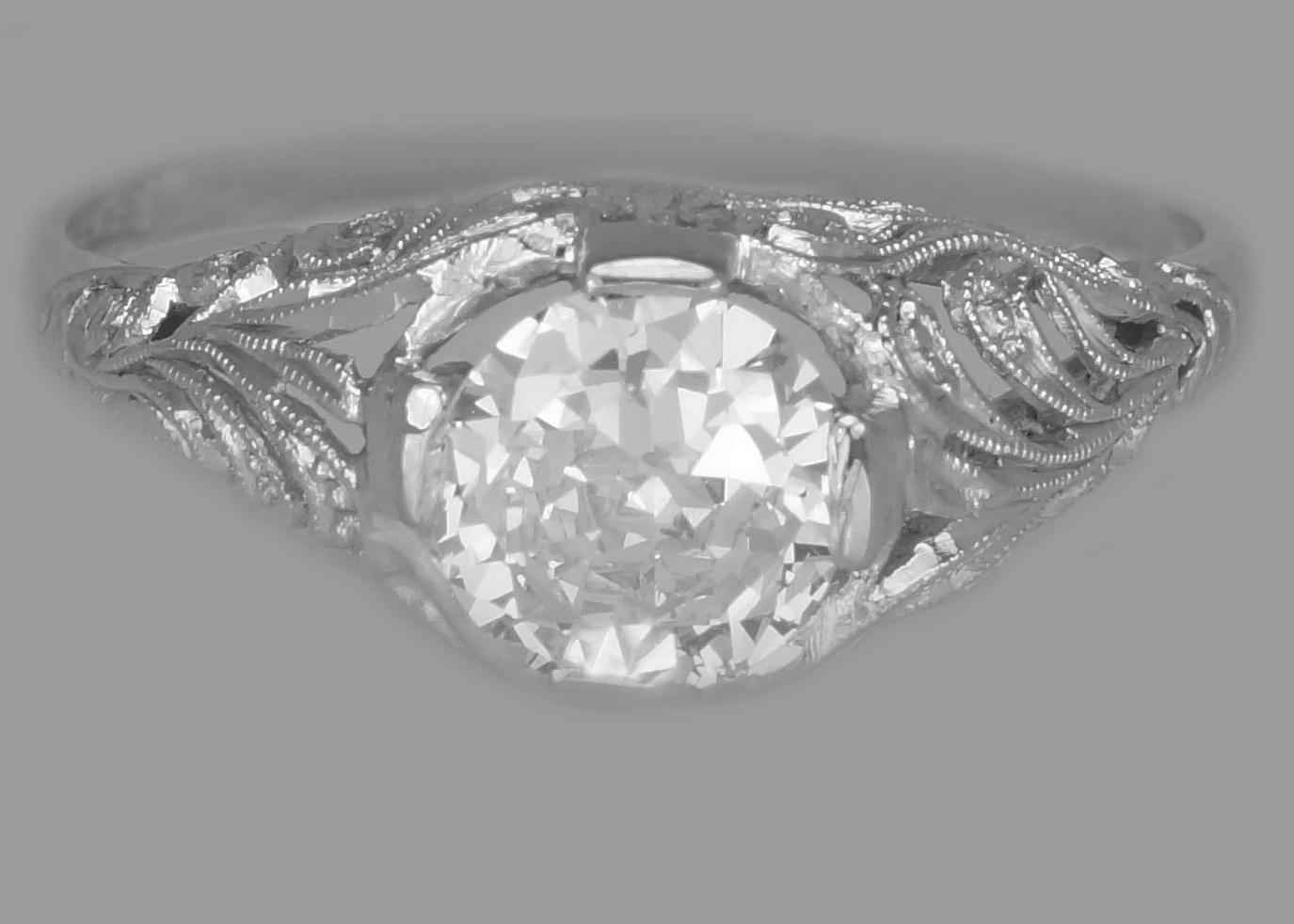 Antique 1.0ct Old Brilliant Cut Solitaire Diamond Platinum Engagement Ring c.1915