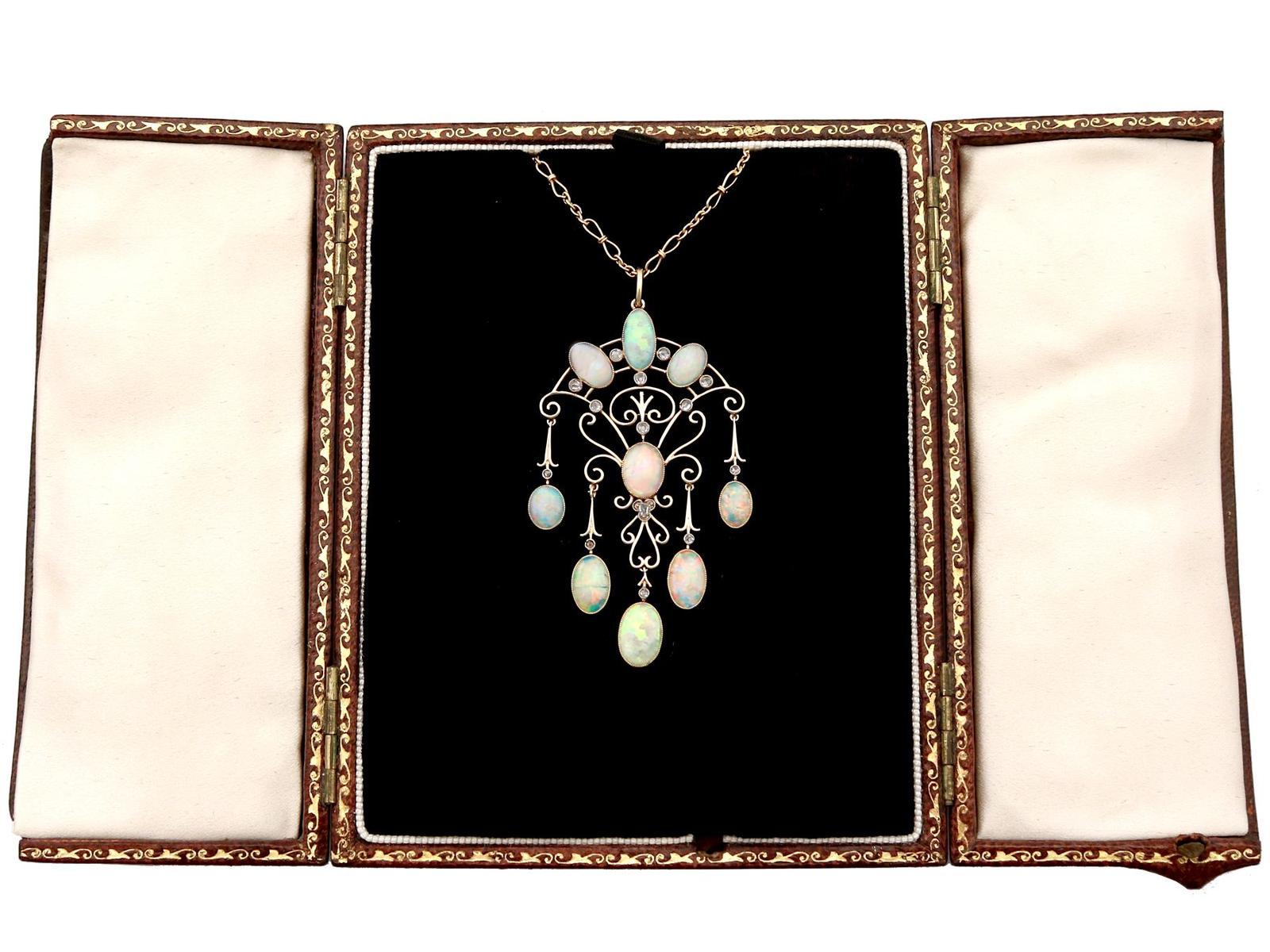 Antique 11.70ct Opal & 0.30ct Diamond, 15ct Yellow Gold Pendant - Arts & Crafts c.1910 (1 of 15)