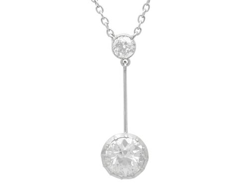A stunning, fine and impressive antique 1.28 carat diamond and platinum pendant - boxed; part of our diverse 1920s diamond jewellery collection.