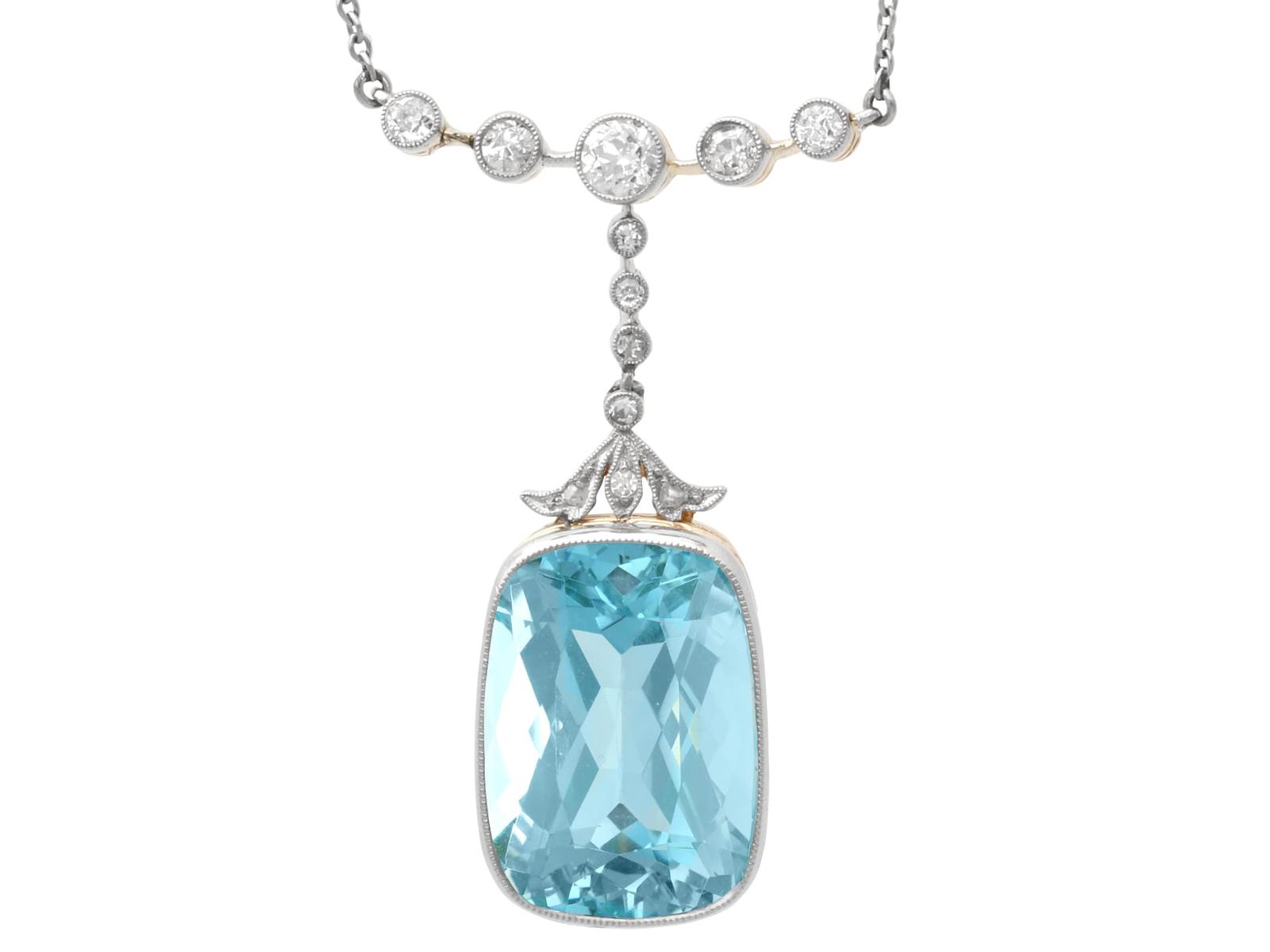 Antique 13.60ct Aquamarine & 0.65ct Diamond, 12ct Yellow Gold Pendant c.1920 (1 of 11)