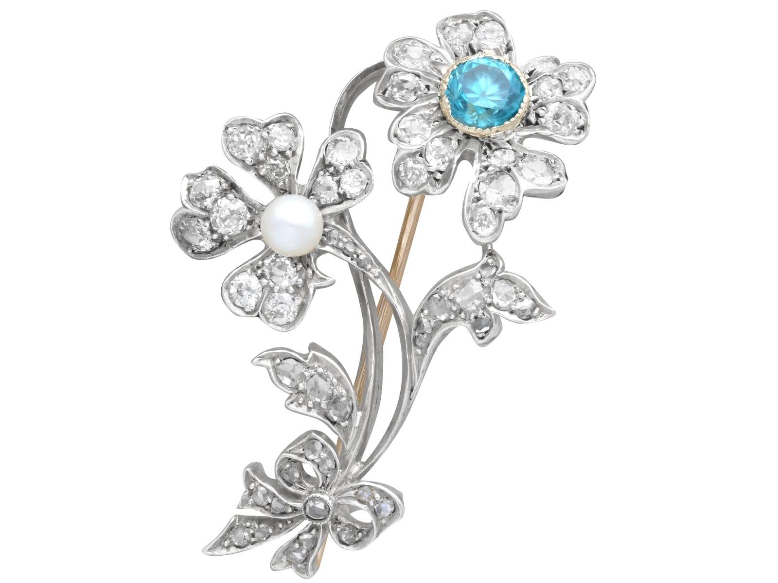Antique 1.36ct High Zircon, Pearl & 1.59ct Diamond, 9ct Yellow Gold Brooch c.1890 (1 of 11)