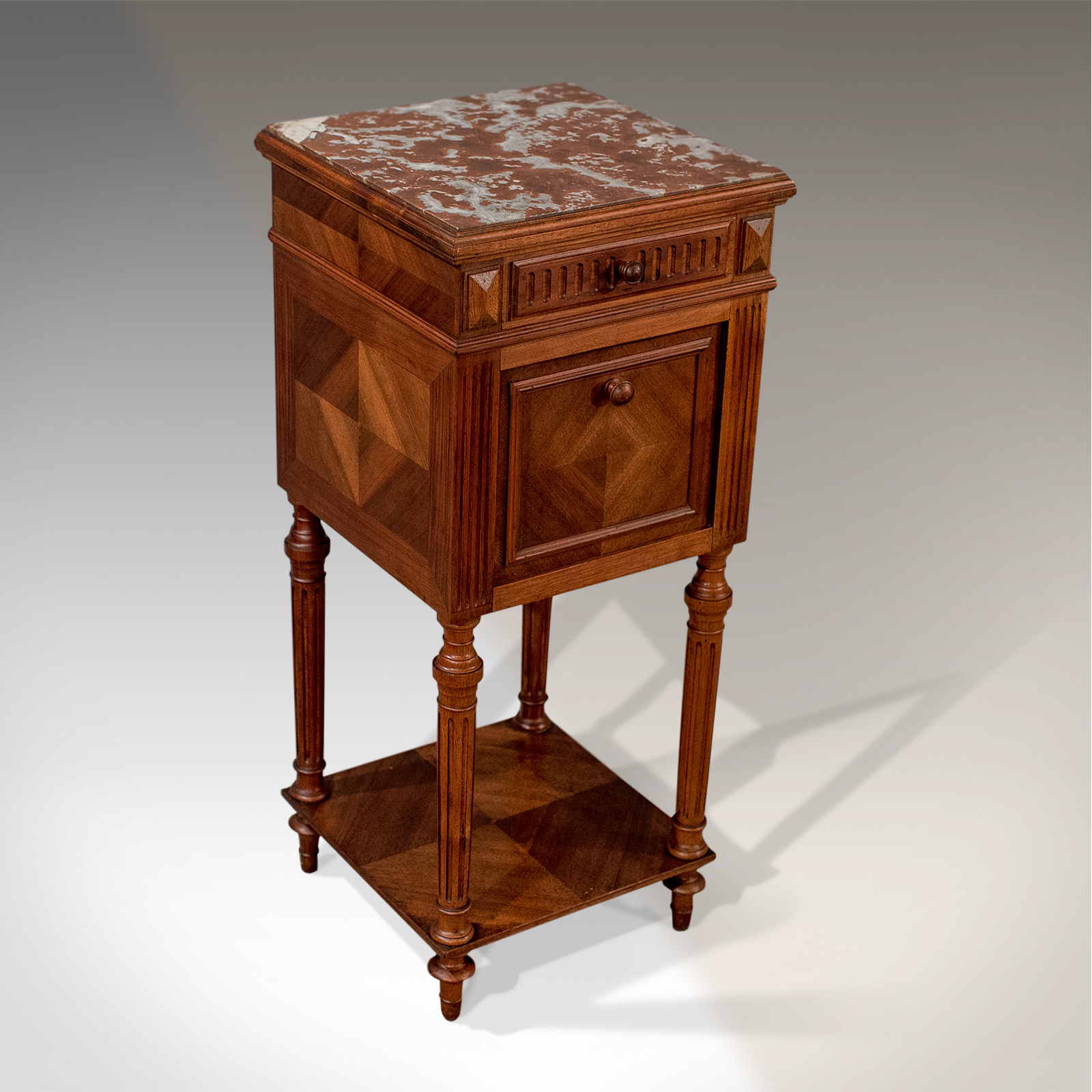 Antique 15" French Bedside Night Stand Pot Cupboard Fine Mahogany & Marble c.1900