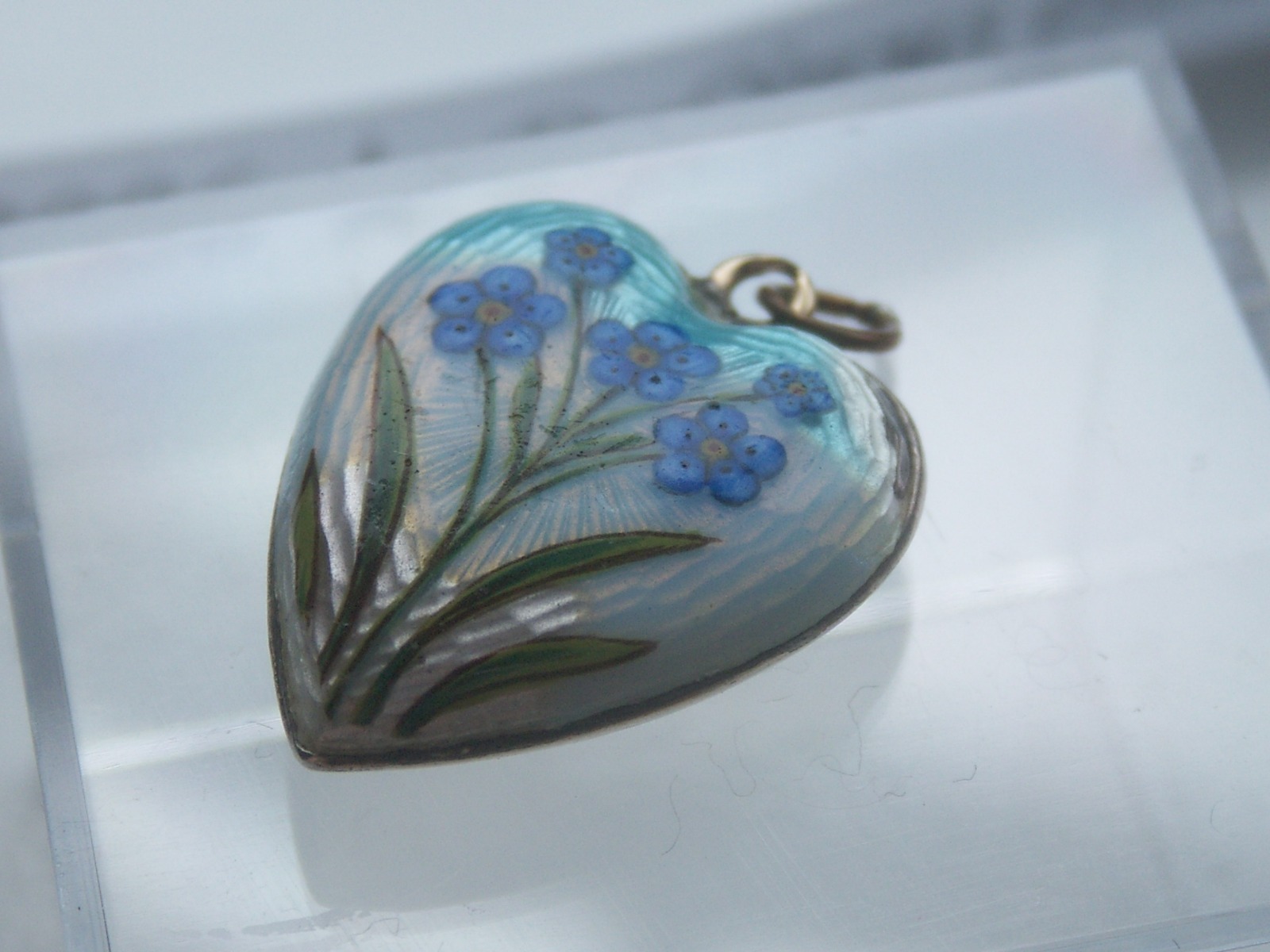 Antique 15ct 625 Gold Guilloche Enamelled Puff Heart Pendant