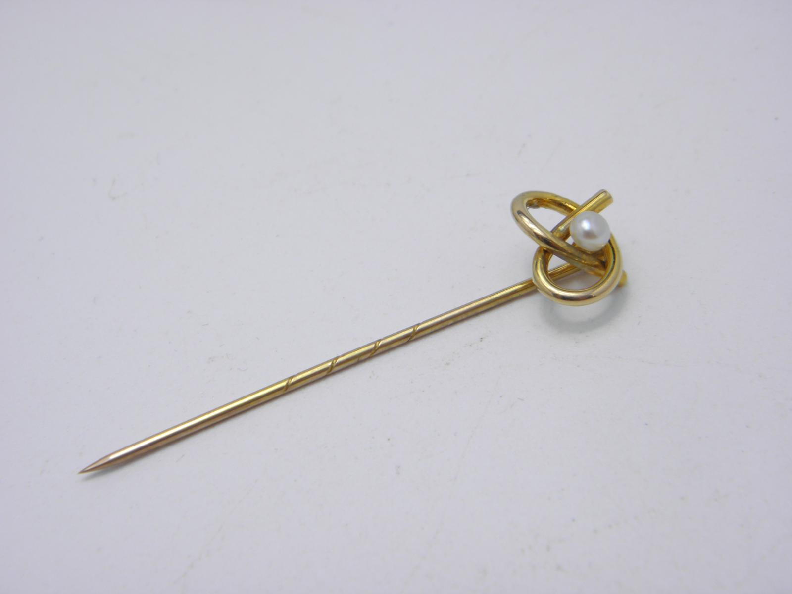 Antique 15ct Gold Pearl Lovers Knot Tie Lapel Cravat Stock Pin C1900 High Quality