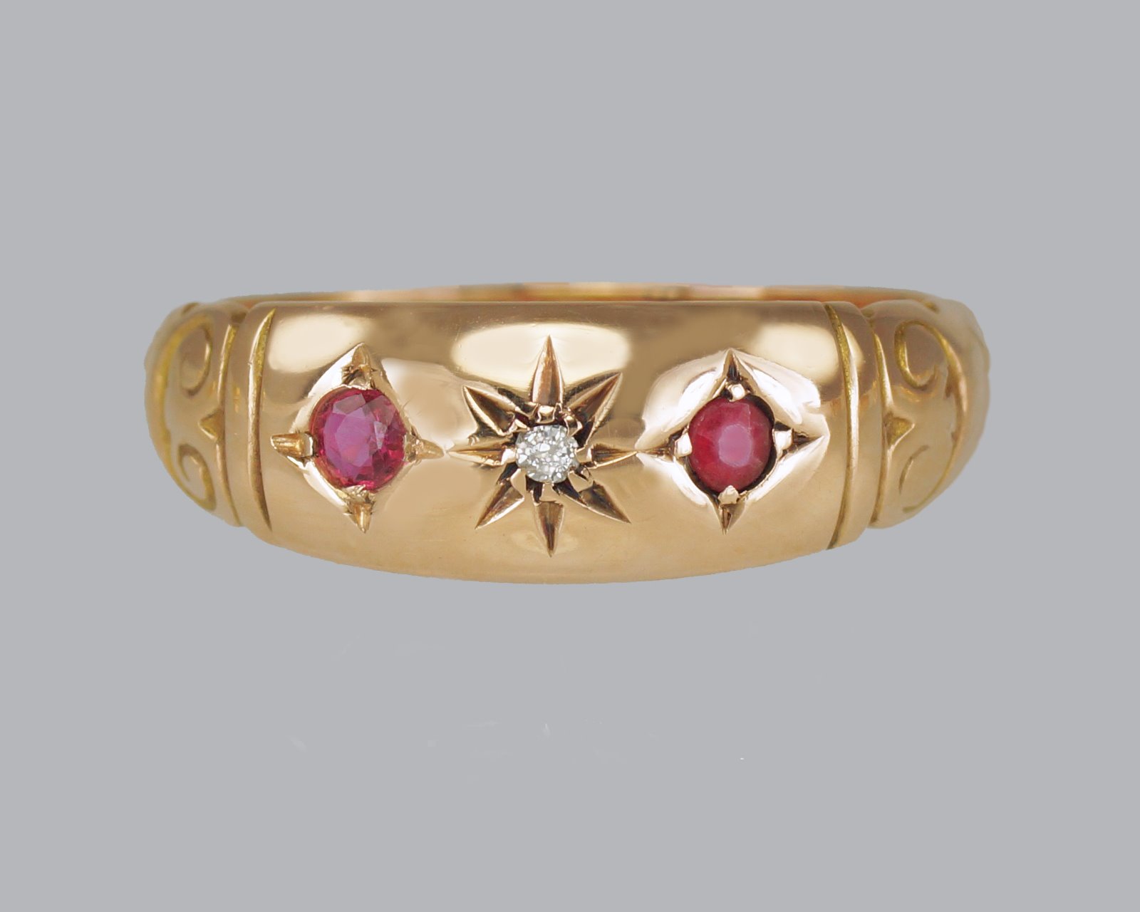 Antique 15ct Gold Ruby & Diamond Gypsy Ring Victorian Trilogy Ring C.1890