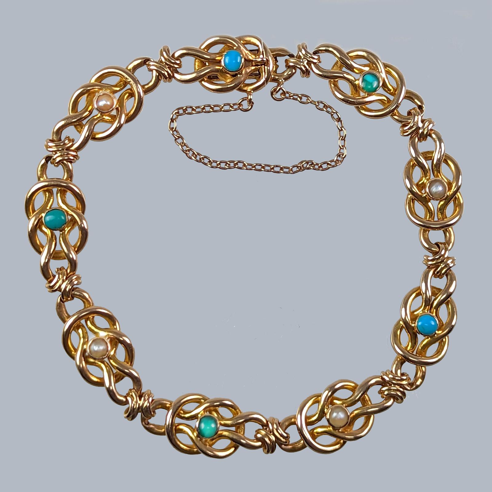 Antique 15ct Gold Turquoise and Pearl Bracelet Fancy Link Victorian Bracelet
