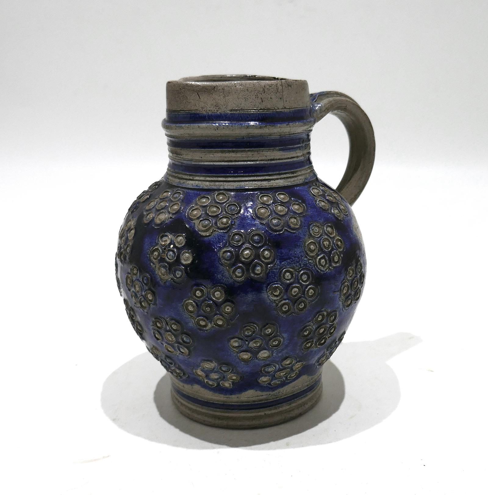 Antique 17thc Pottery Salt Glazed Stoneware Westerwald Jug With Flower Decoration