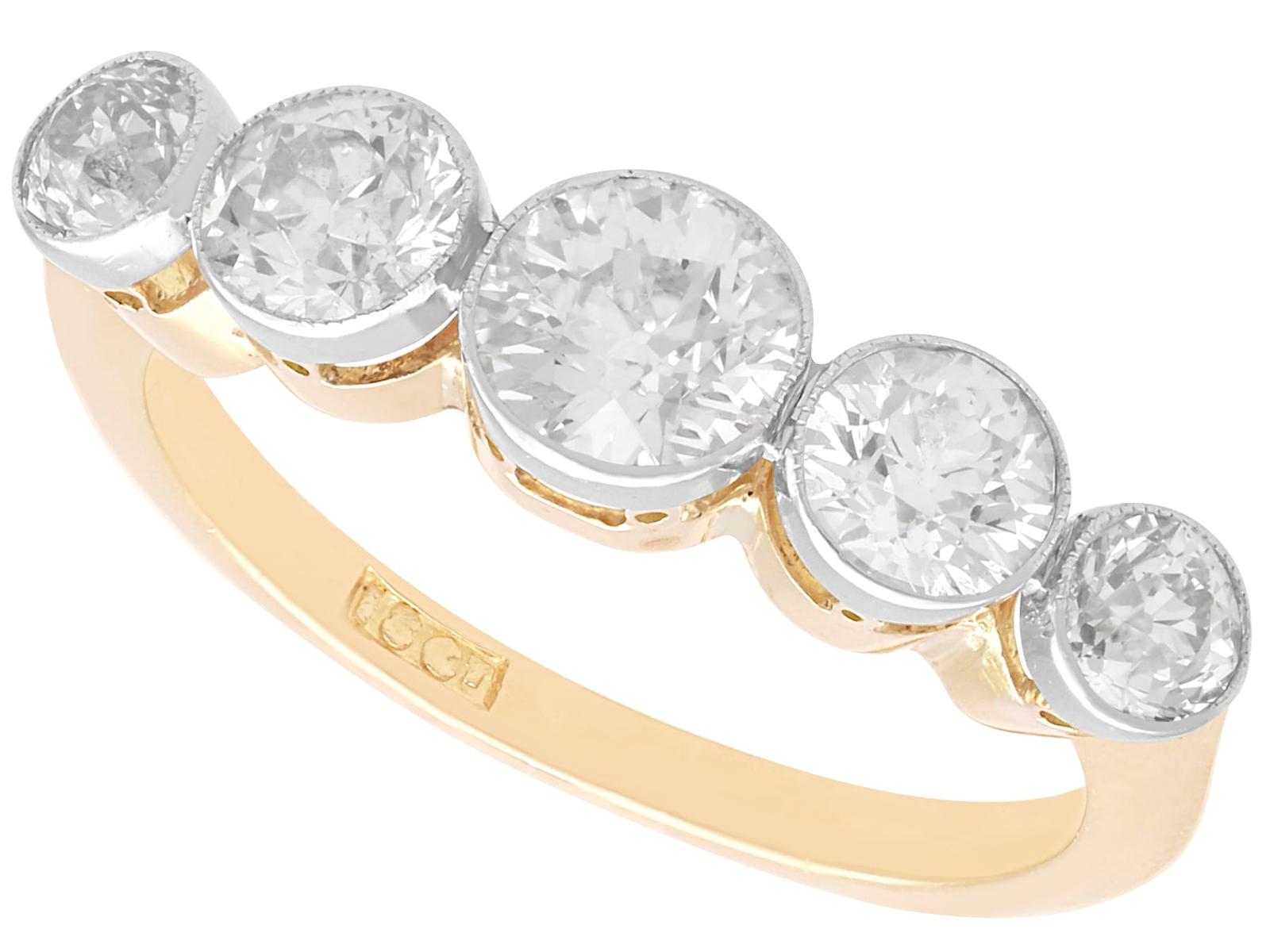 Antique 1.82ct Diamond and 15ct Yellow Gold Five Stone Ring Circa 1900