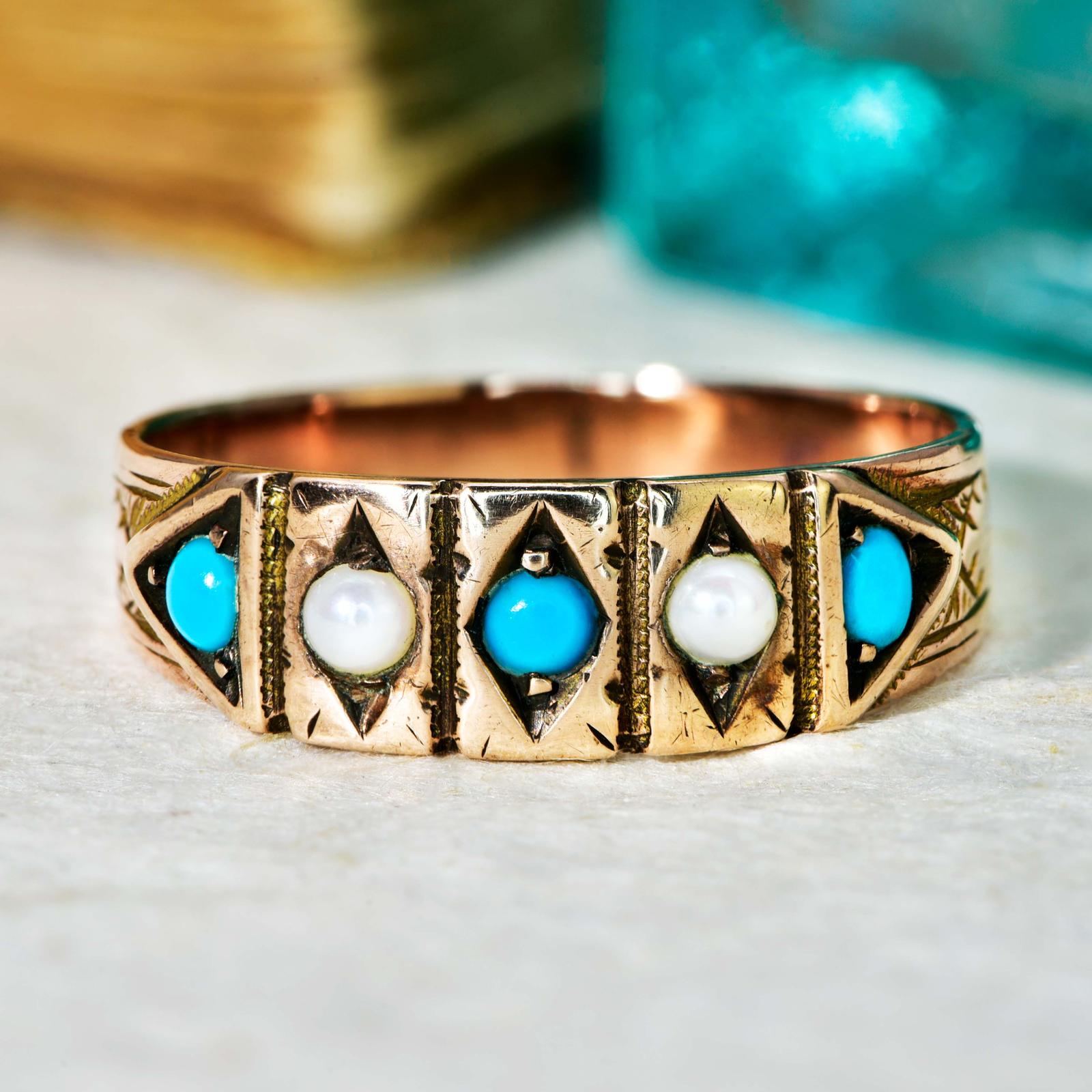 Antique 1876 Victorian Turquoise and Pearl Dreamy Ring