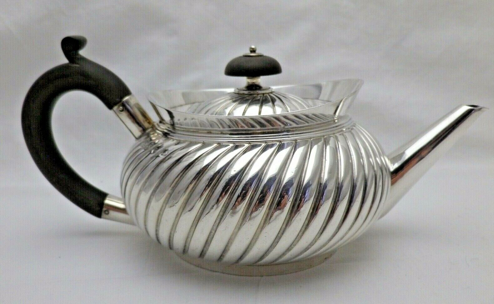 Antique 1890 Solid Silver Round Fluted Bachelor Teapot 415g