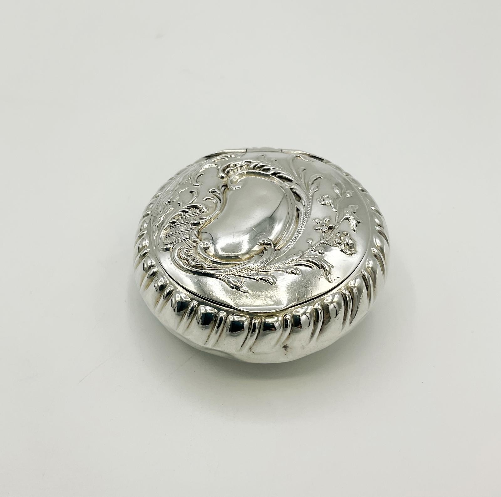 Antique 1897 Embossed Solid Silver Pill Box