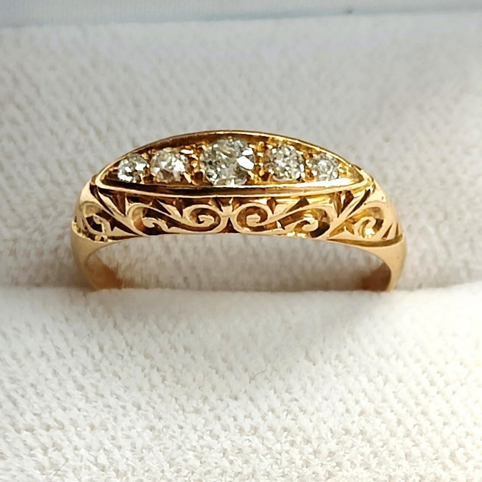 Antique 18ct Gold Diamond Boat Ring Chester Hallmarks (1 of 9)