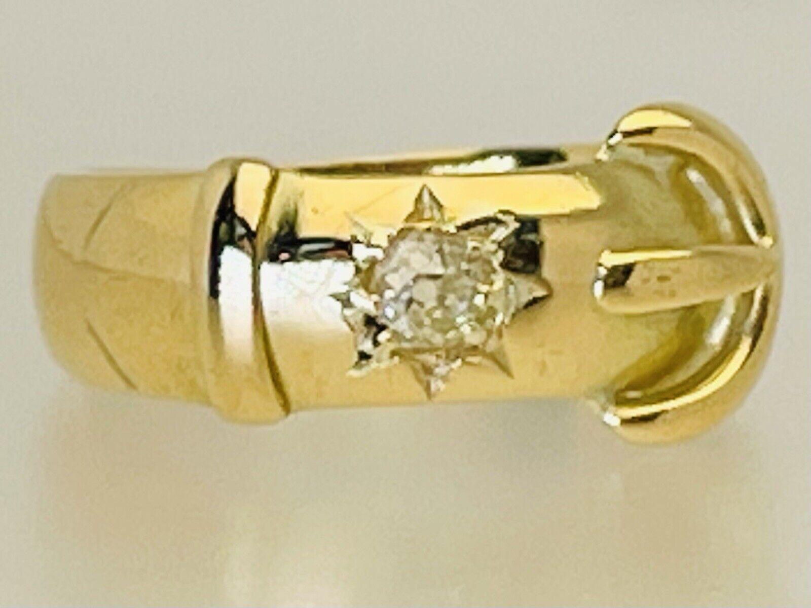Antique 18ct Gold Diamond Gypsy Set Solitaire Buckle Ring
