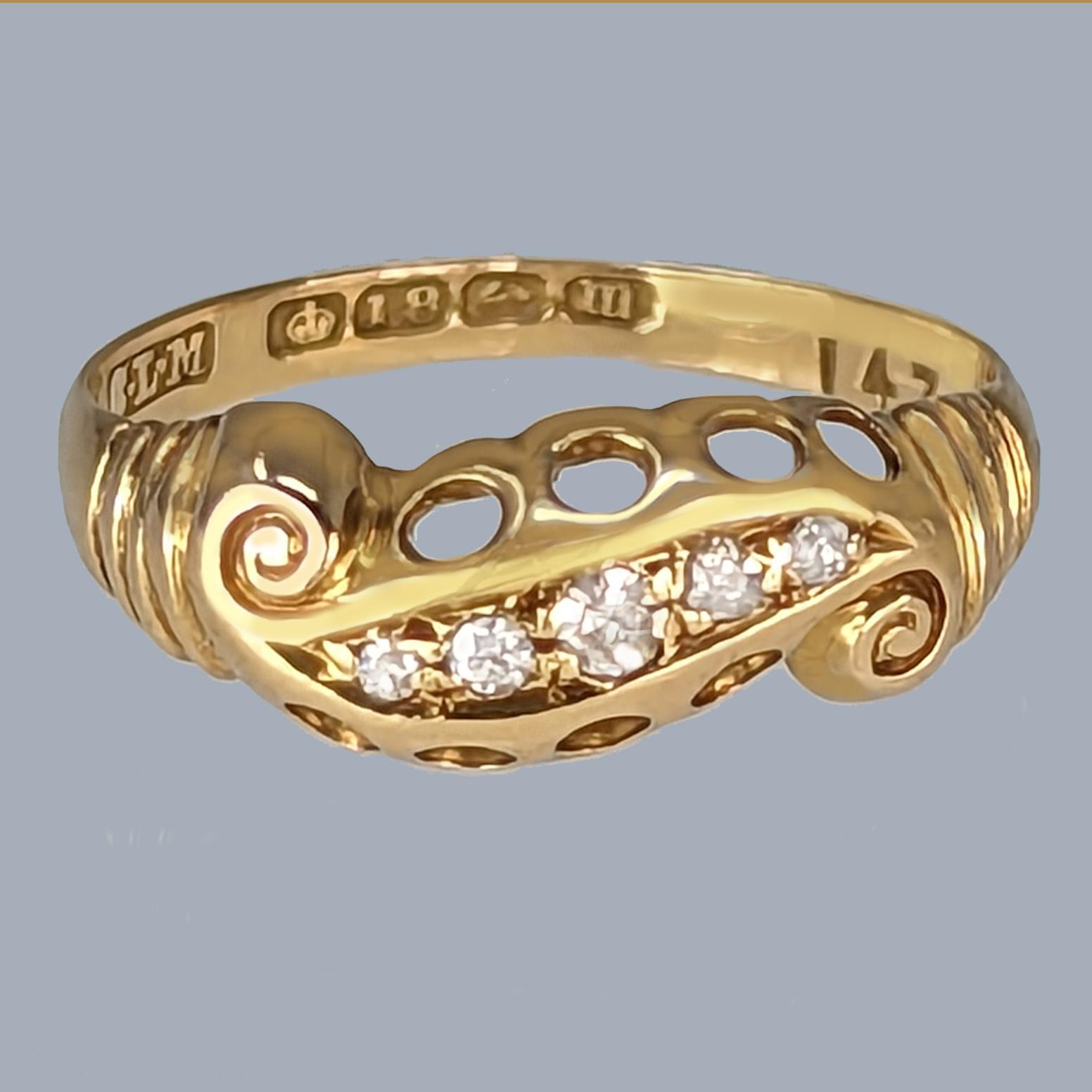 Antique 18ct Gold Diamond Ring Five Stone Scroll Ring Hallmarked Birmingham 1911