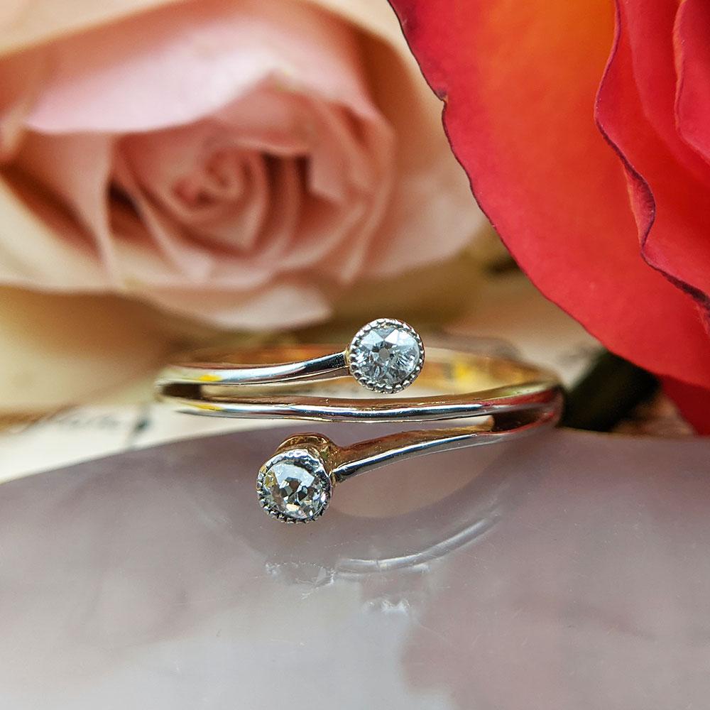 Antique 18ct Gold Old Cut Diamond Toi Et Moi Ring