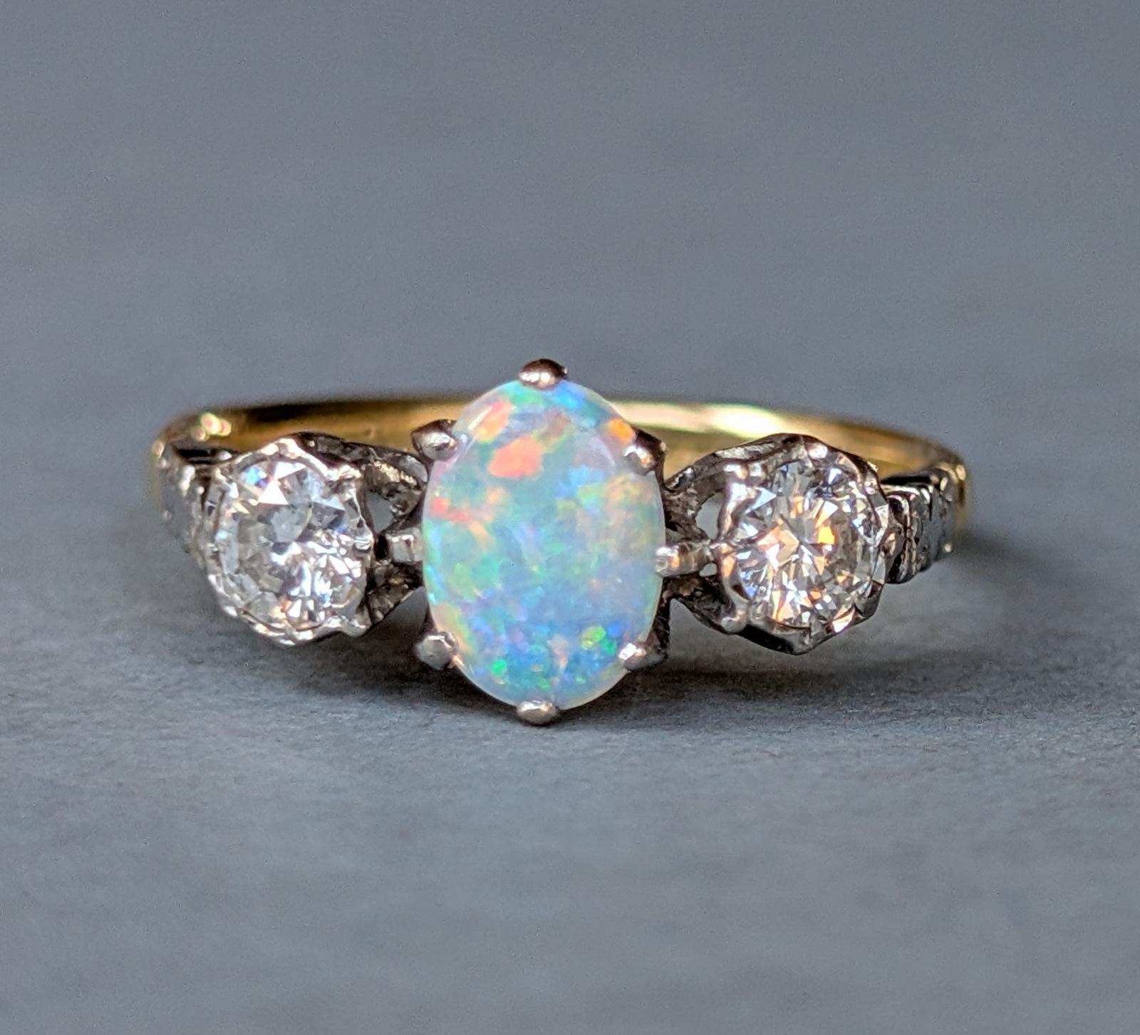 Antique 18ct Gold Opal Diamond Ring (1 of 10)