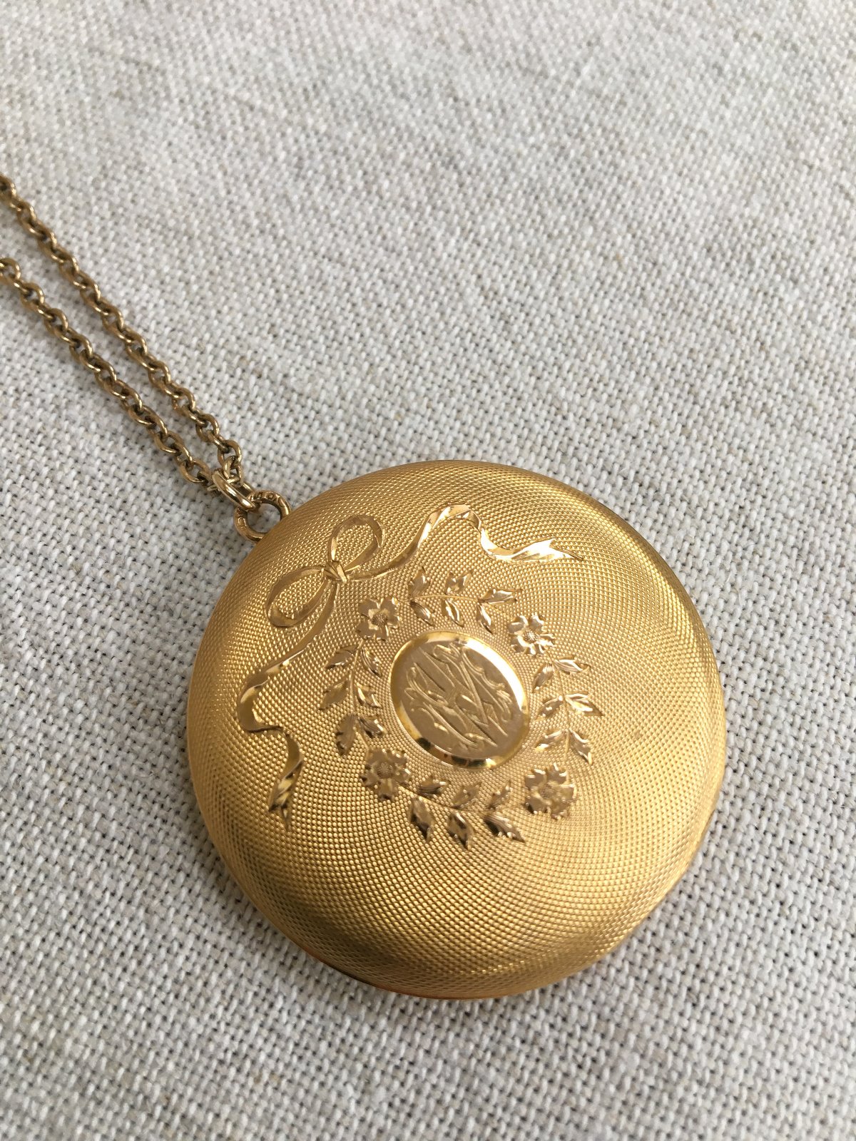 Antique 18ct Gold Round Engraved Locket with Gilt Chain