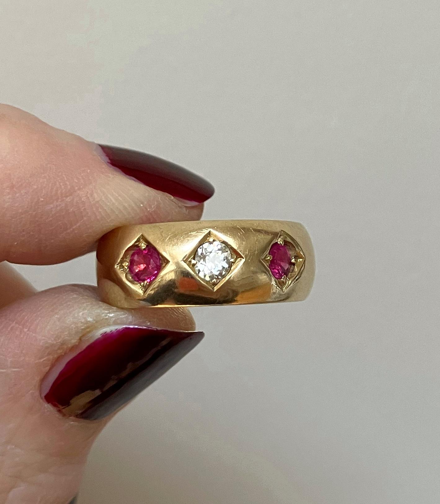 Antique 18ct Gold Ruby & Old Cut Diamond Gypsy Ring - Size N