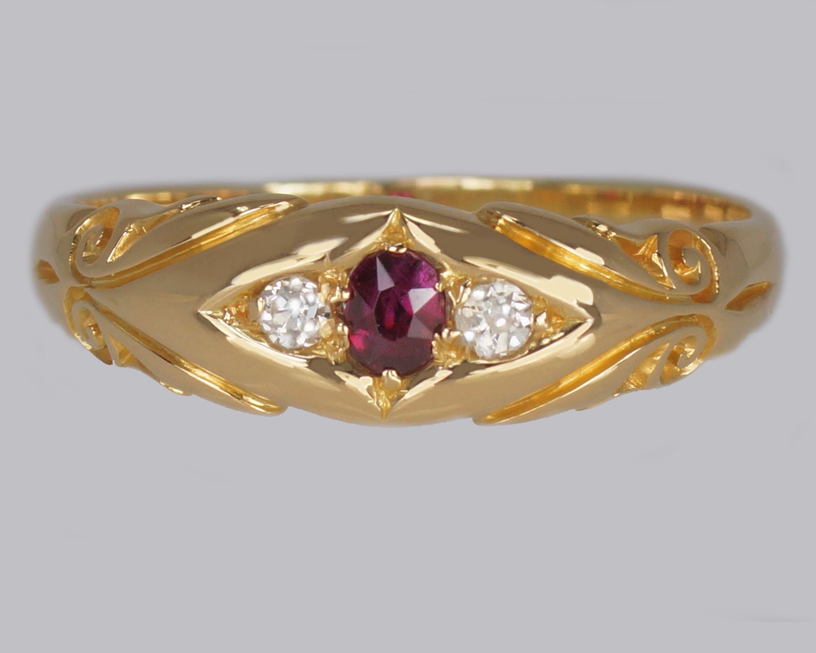 Antique 18ct Gold Ruby & Old Cut Diamond Ring Victorian Trilogy Ring c.1900