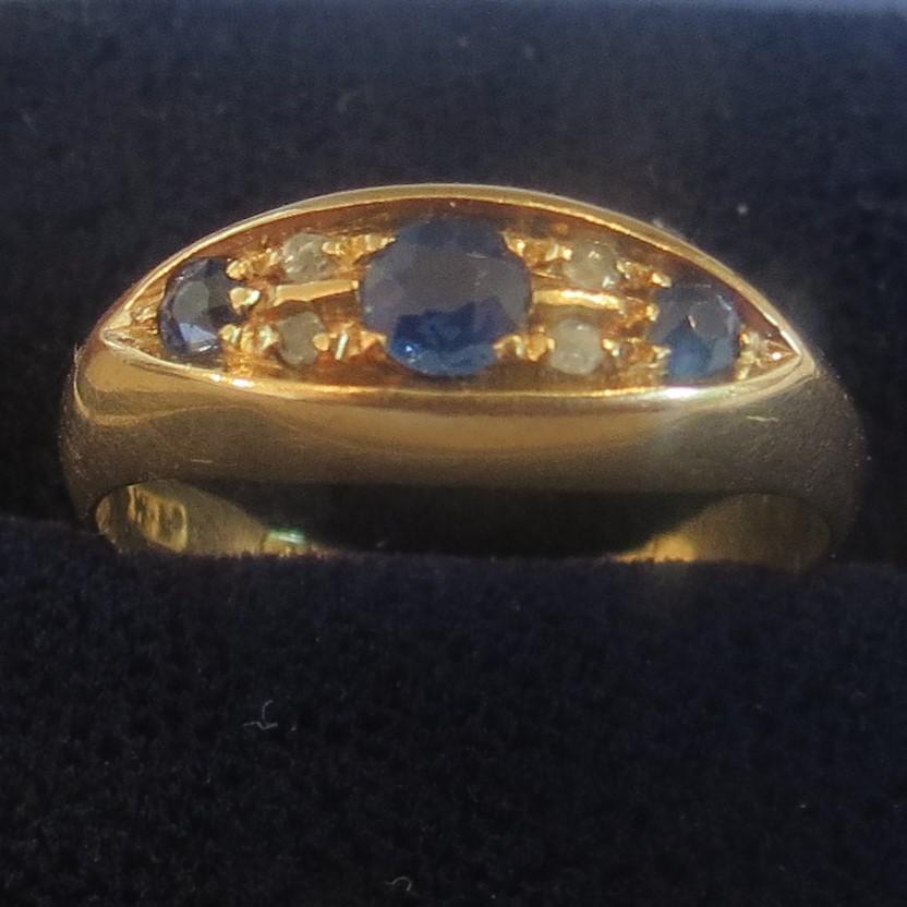 Antique 18ct Sapphire and Diamond Navette Ring (1 of 7)