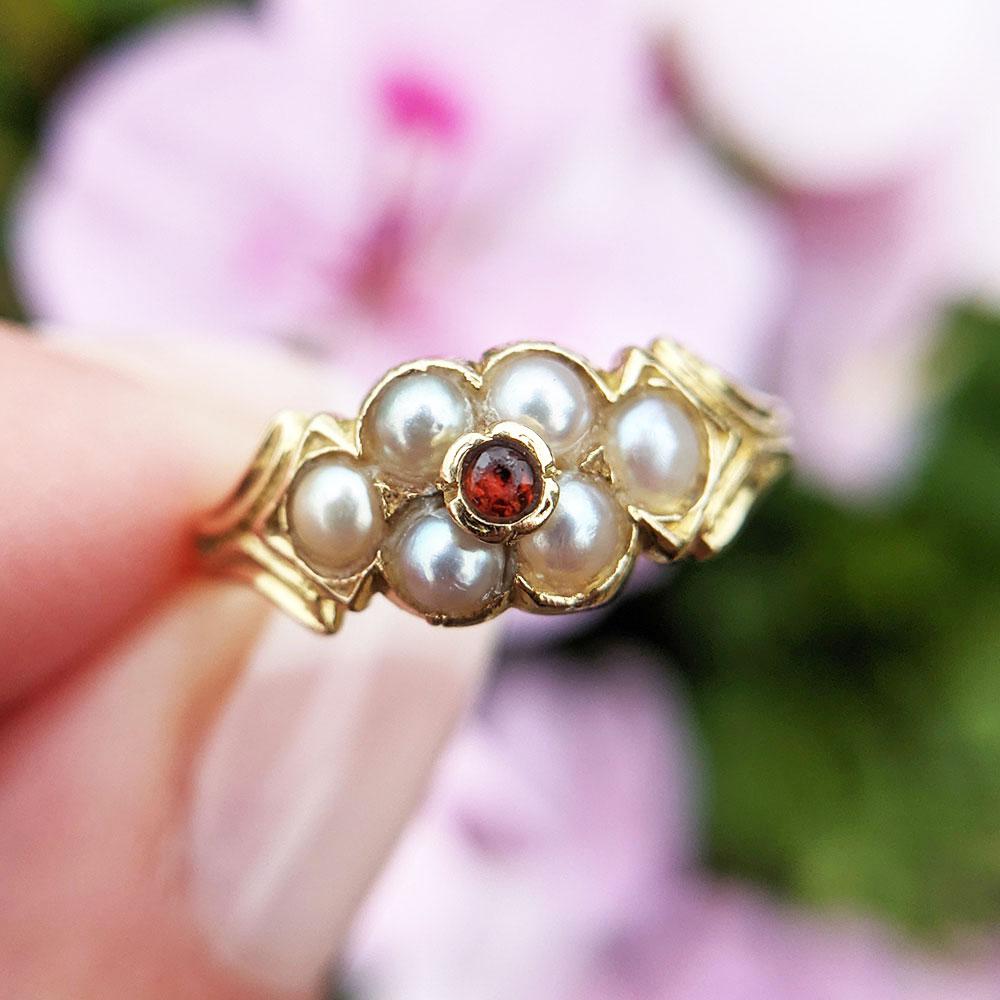 Antique 18ct Yellow Gold Garnet & Pearl Locket Ring