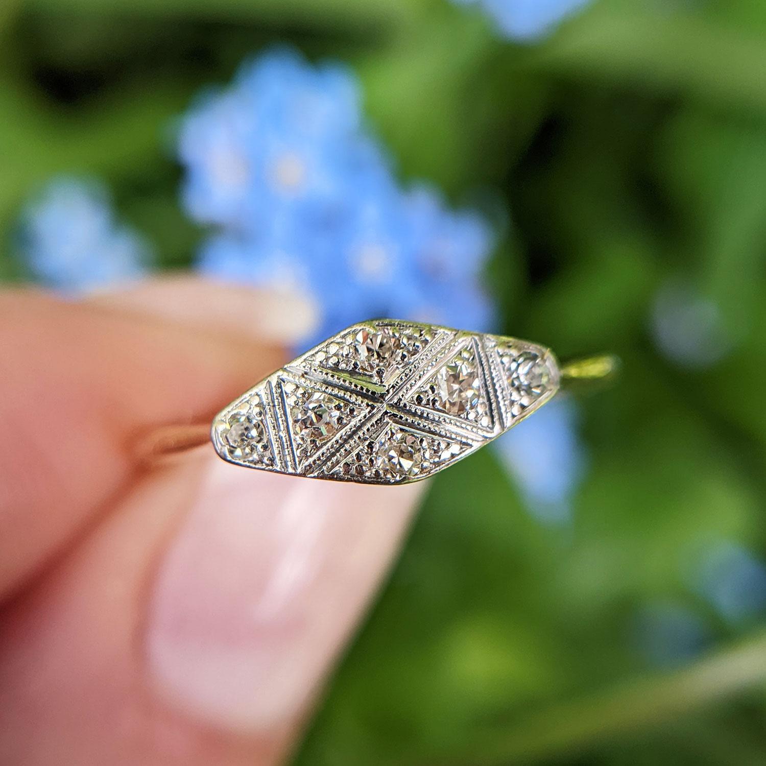 Antique 18ct Yellow Gold, Platinum and Diamond Lozenge Ring