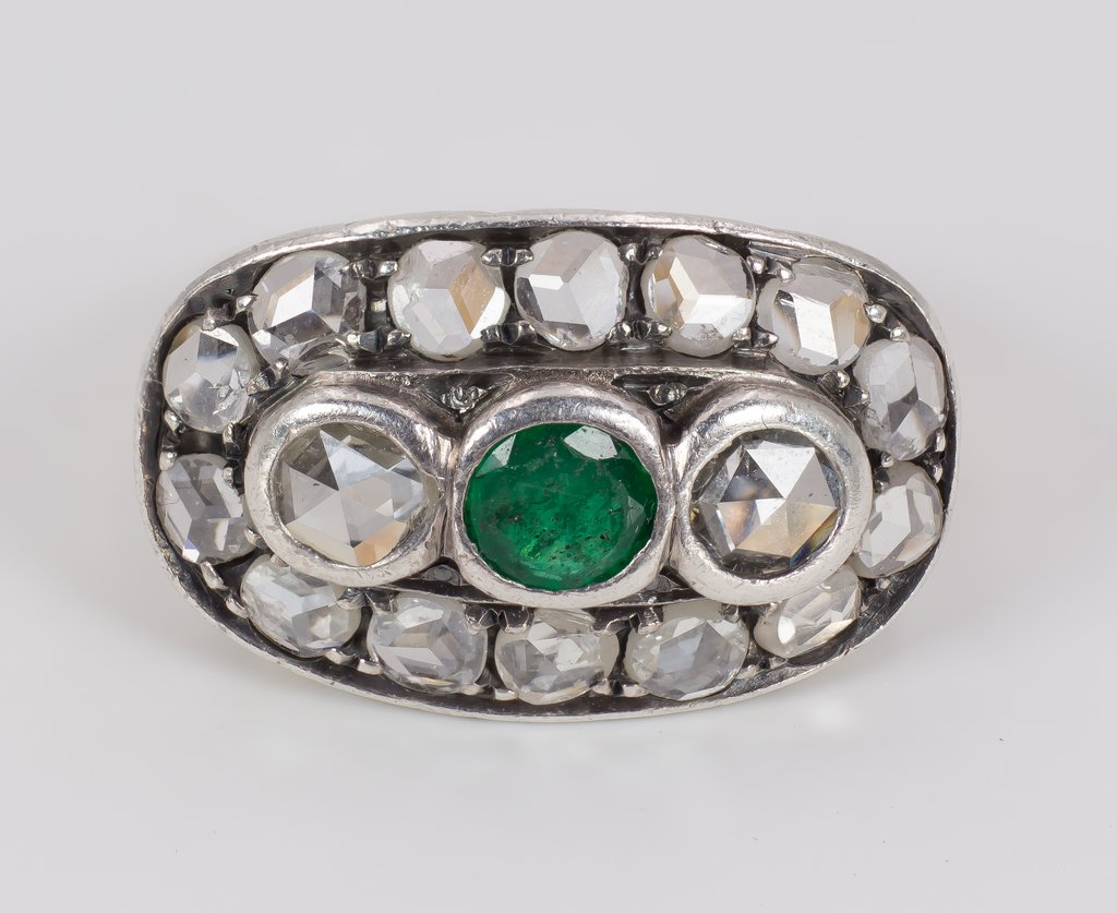 Antique 18K Gold, Silver, Emerald & Diamond Ring, Early 1900s